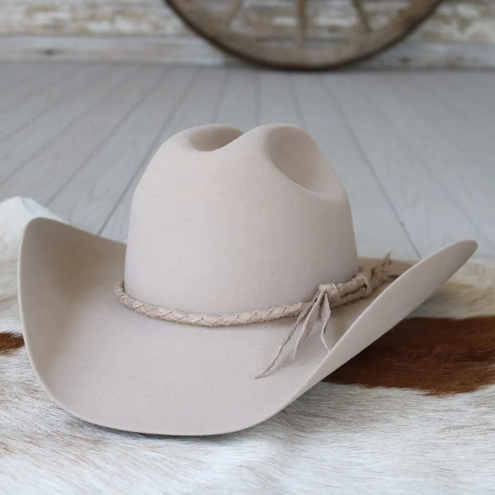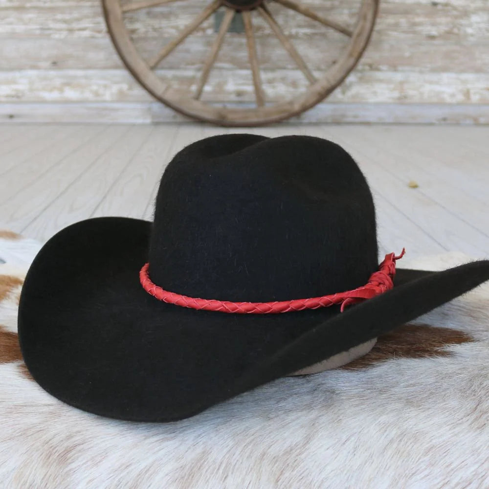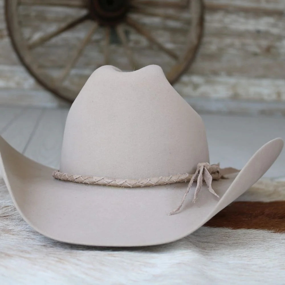 Crafted from soft, quality leather, this hat band features thick braided ropes that add a rustic touch to any cowboy hat. Two braided leather strands wrap around the crown, finished with tassels. The adjustable design ensures a comfortable fit for most hat sizes, and since each band is handmade, no two are exactly alike.