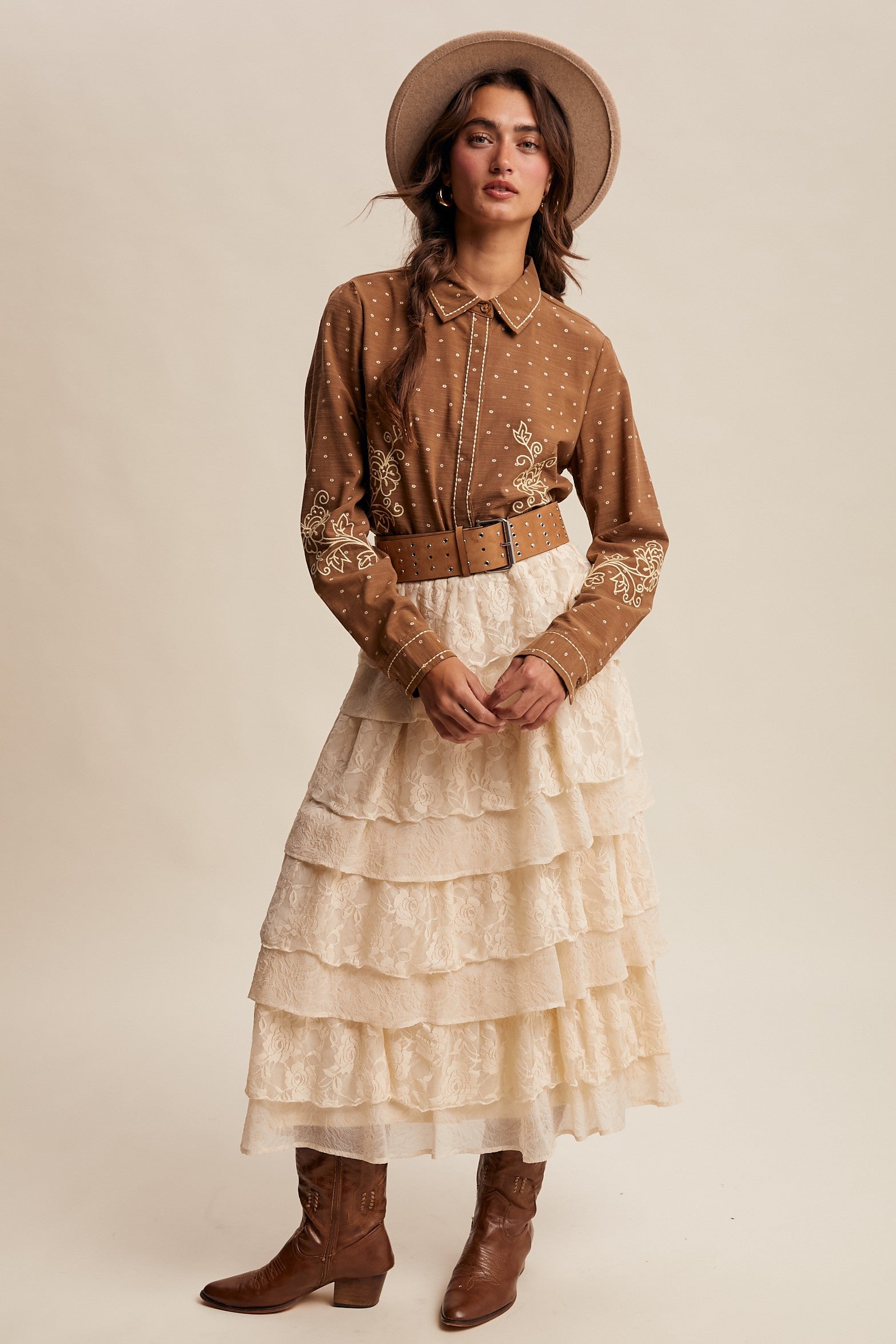 sleeves, and cuffs adds handcrafted charm - Western Stitching Details: Subtle topstitching and structured collar