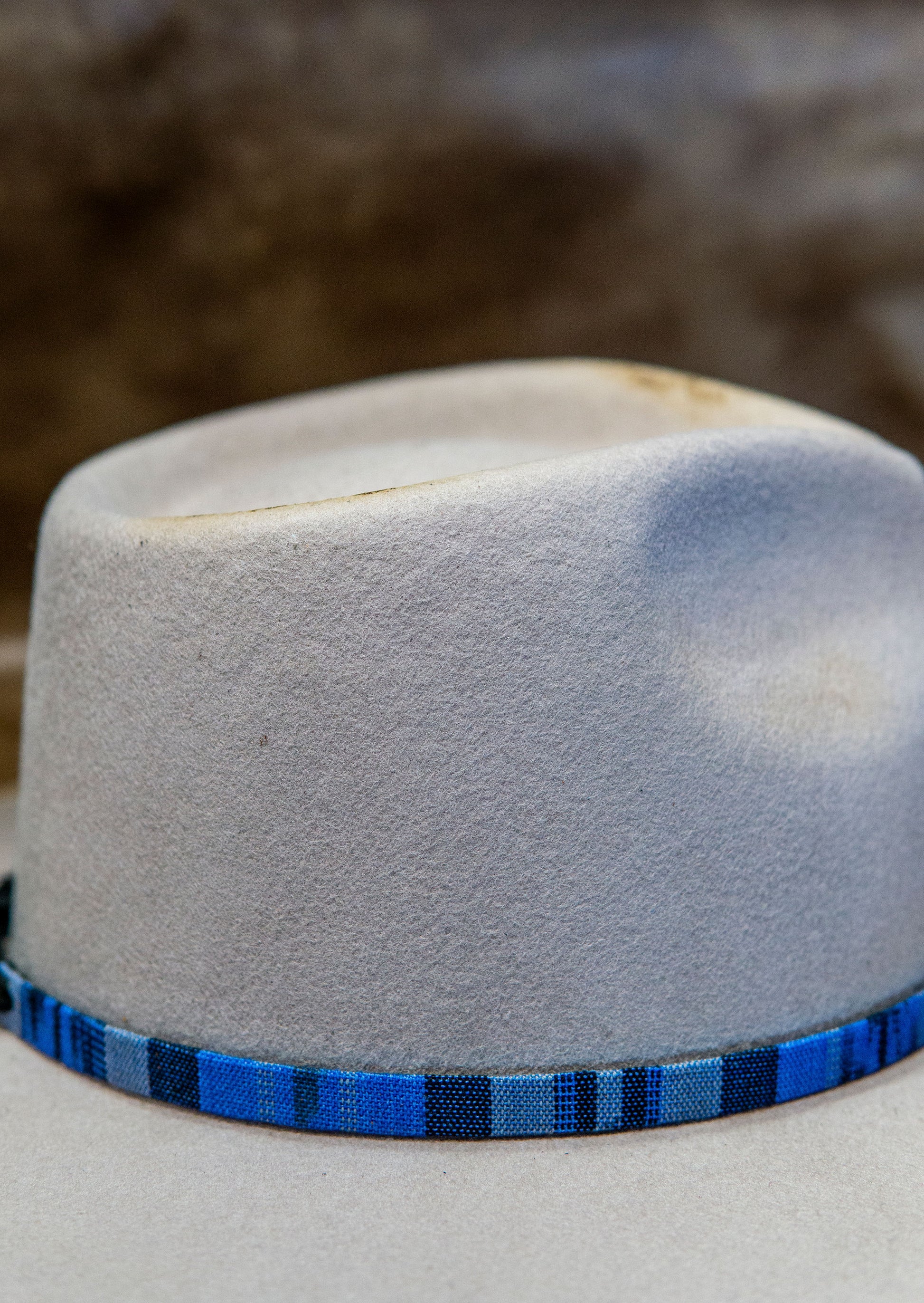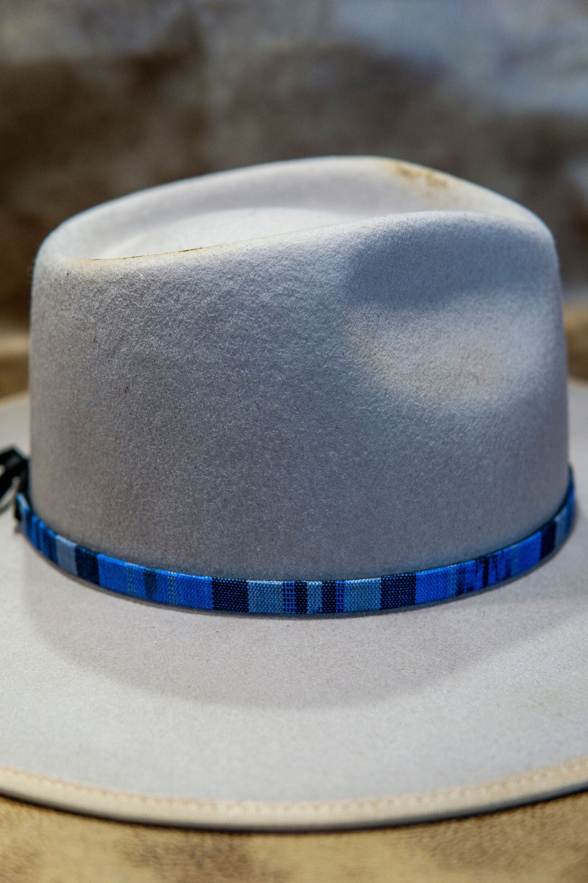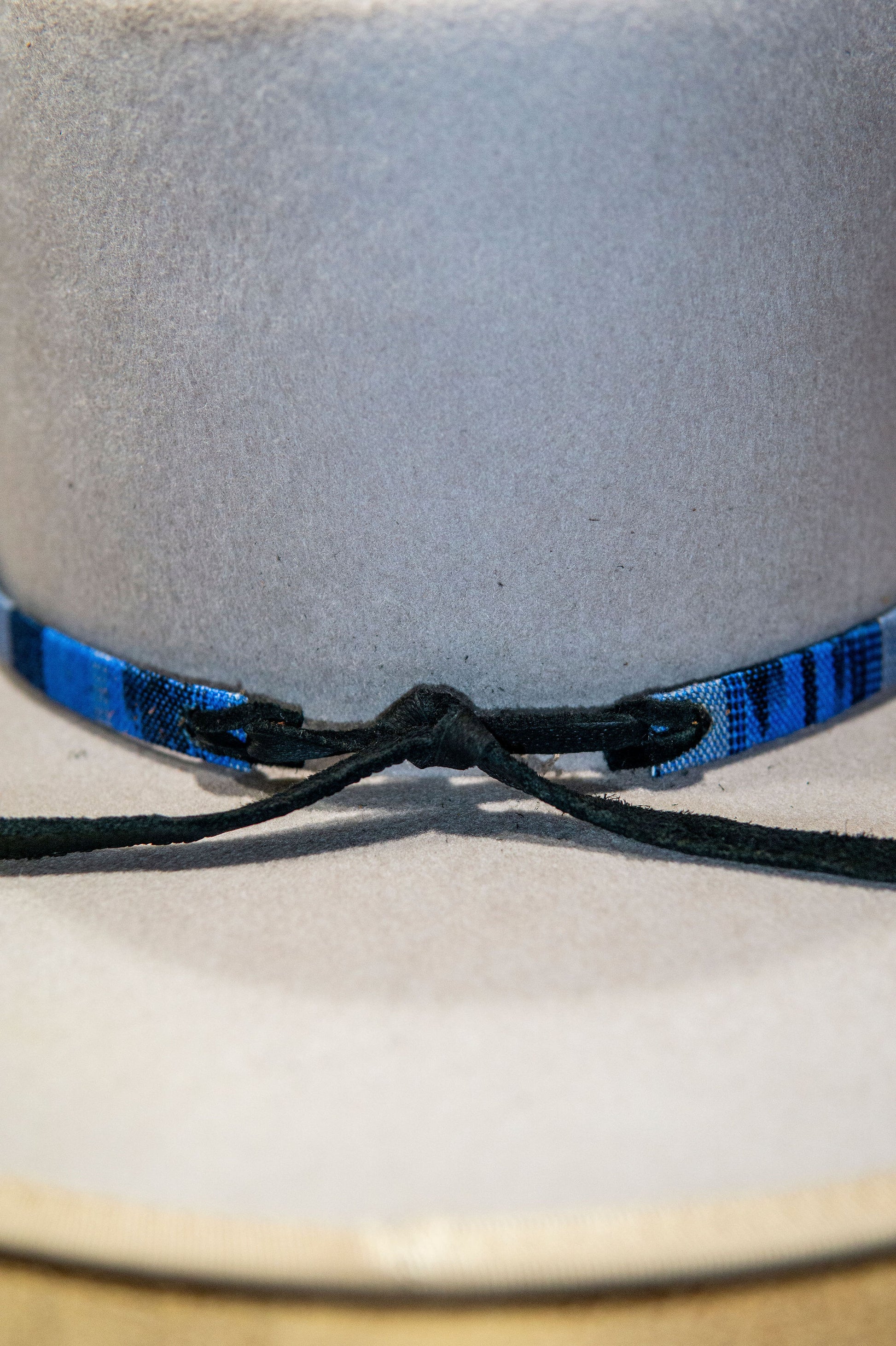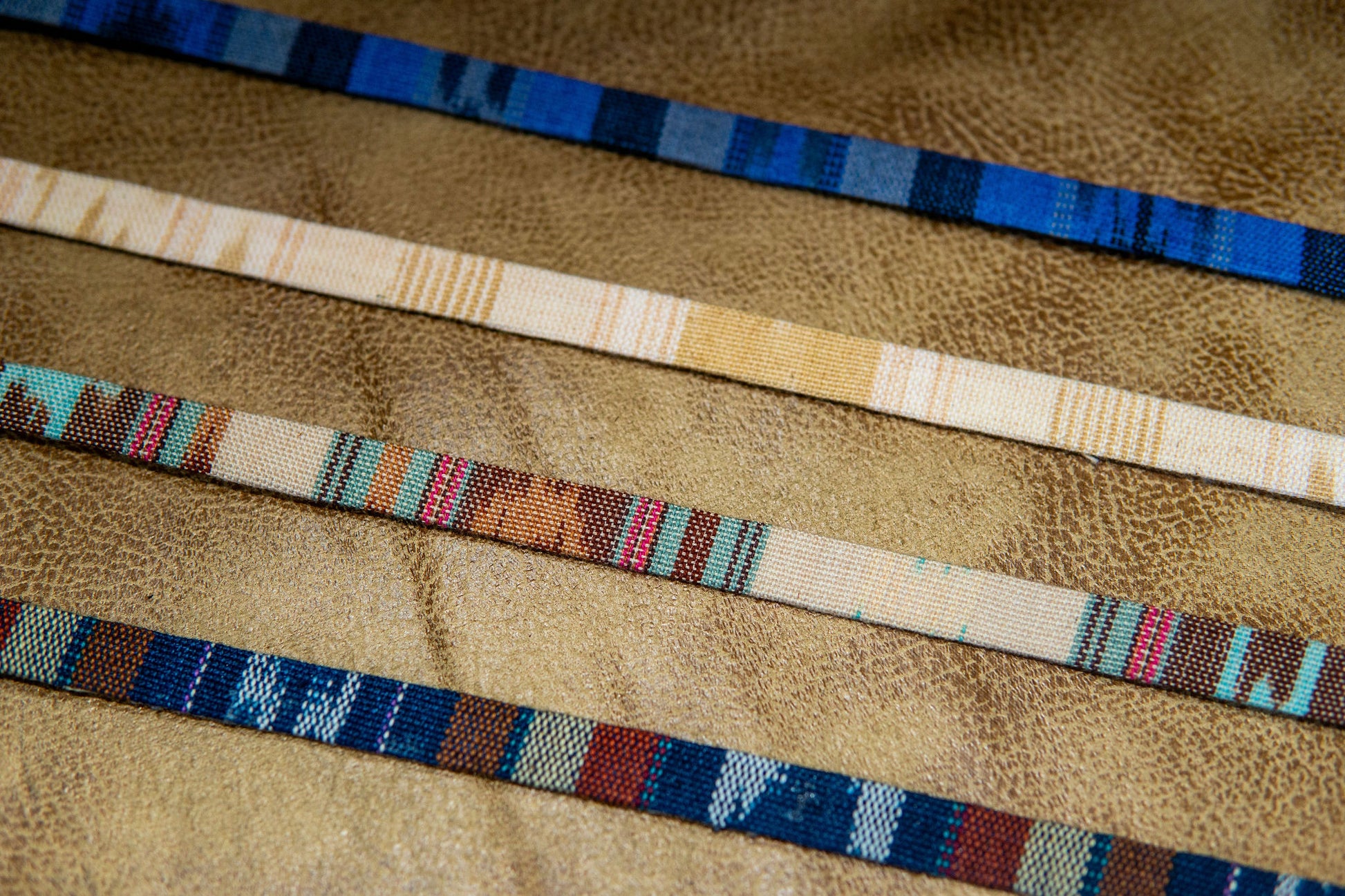 Tapestry hat bands with suede tie backs.